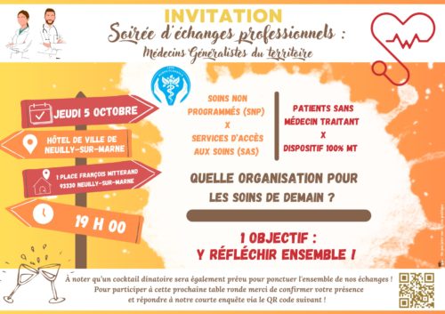 Cette soirée est réservée aux médecins généralistes et spécialistes de Neuilly-Plaisance et Neuilly-Sur-Marne.